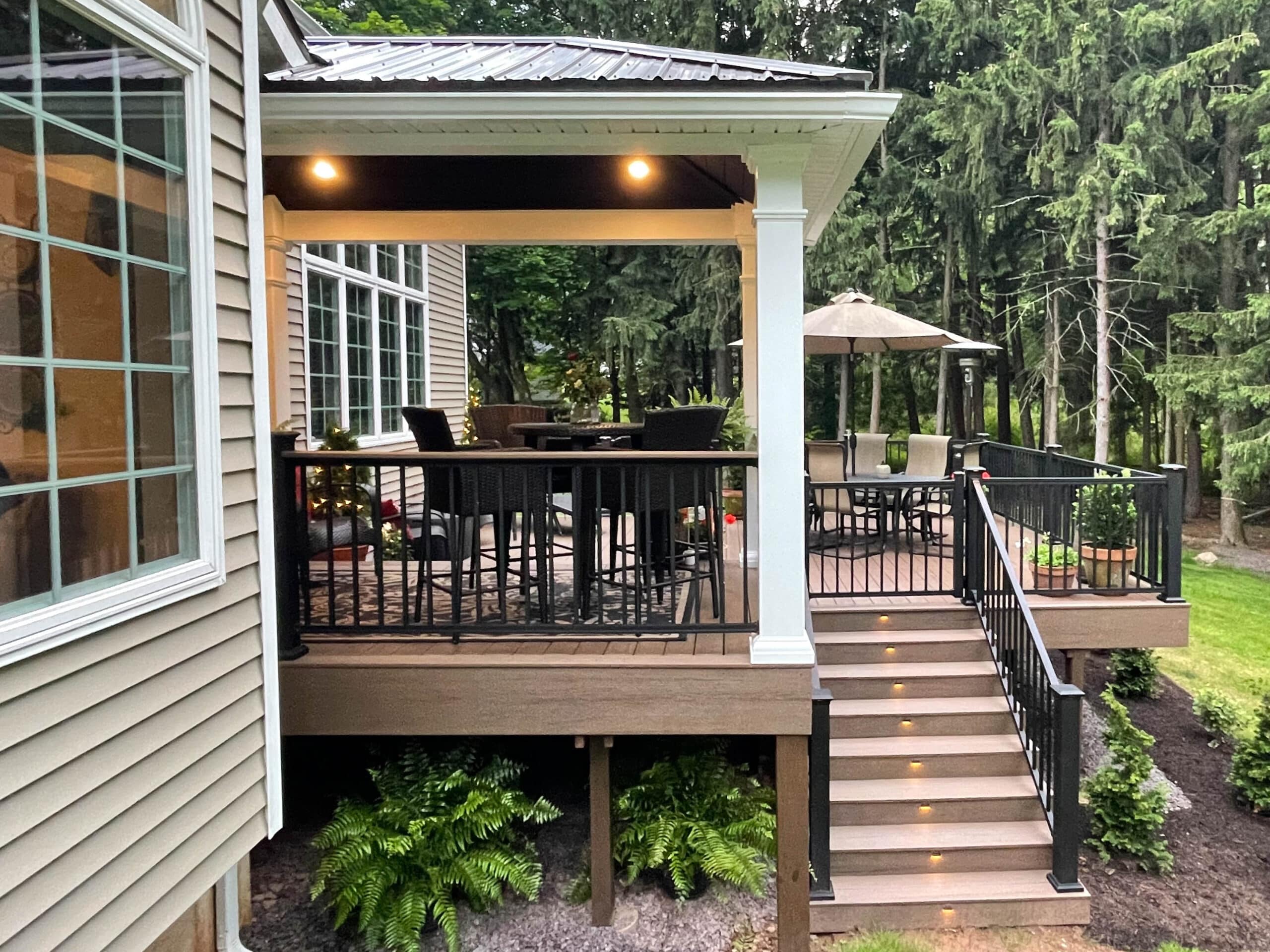 Explore our two premium material options and browse our past projects for inspiration. Let us help you enhance your home with a stunning deck addition that’s both practical and beautiful!